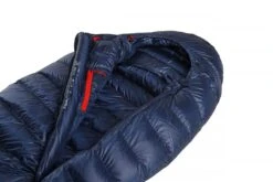 Le AR 300/800 d’Aura est un sac de couchage garni de 300 grammes de duvet d’oie polonais de qualité, de 800 cuin. Le duvet est réparti dans des compartiments en forme de H afin de limiter les déperditions thermiques. Il ne dispose pas d’une forme momie classique, mais d’une forme en trapèze. Grâce à cela et à sa coupe standard, il offre un bon rapport entre le poids et la température de confort. Sa fermeture éclair sur le devant permet une plus grande liberté de mouvement, pour manger tout en restant au chaud par exemple.