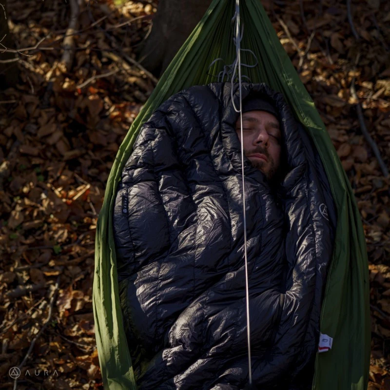 Le OXY 300/860 de la marque polonaise Aura, est un sac de couchage ultraléger et polyvalent, avec un design épurée. Il dispose d’une forme ovale, simple et innovante. Cette géométrique offre un espace confortable, tout en minimisant le poids. Il est réalisé avec un tissu ultraléger, un Toray Airtastic de 20 g/m².