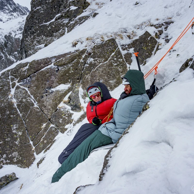 Le X 300/800 d’Aura est un sac de couchage qui se démarque par sa forme et sa conception. Il a été conçu spécialement pour l’escalade et l’alpinisme, pour des bivouacs en conditions difficiles. Sa forme anatomique ajustée résulte d’une conception prenant le moins de place possible au bivouac, d’une recherche de confort aussi bien allongé que assis, sans perdre en isolation. Pour cela, il dispose sur les côtés au niveau du torse, de panneaux latéraux qui augmentent la thermicité.