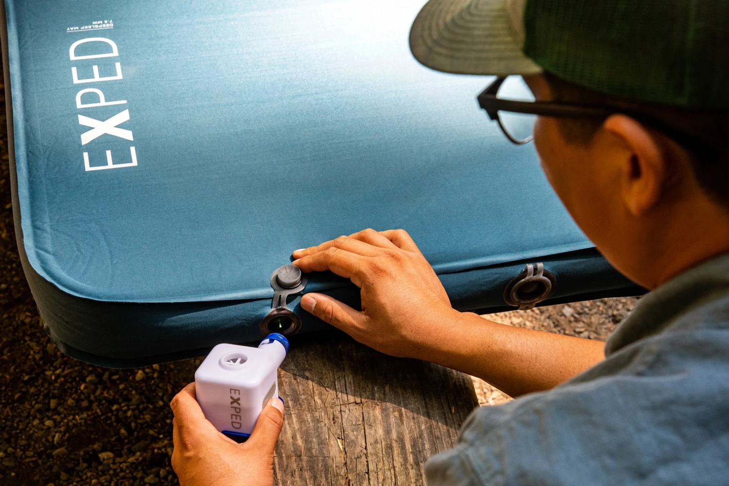 Développé pour gonfler les matelas Exped, le Widget est équipé d’un adaptateur de valve universel, ce qui lui permet de se connecter à pratiquement n’importe quel matelas de plein air, disponible sur le marché.