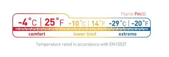 Confort : le Flame FmIII est garni de 440 g (taille Regular) de duvet dâoie europĂ©en 850 cuin, rĂ©partition 90/10, ce qui correspond Ă une tempĂ©rature confort de -4°C (selon la norme europĂ©enne EN13537). Lâenveloppe intĂ©rieure en nylon 7 deniers et extĂ©rieure en nylon lĂ©ger 10 deniers est agrĂ©able au touchĂ©.