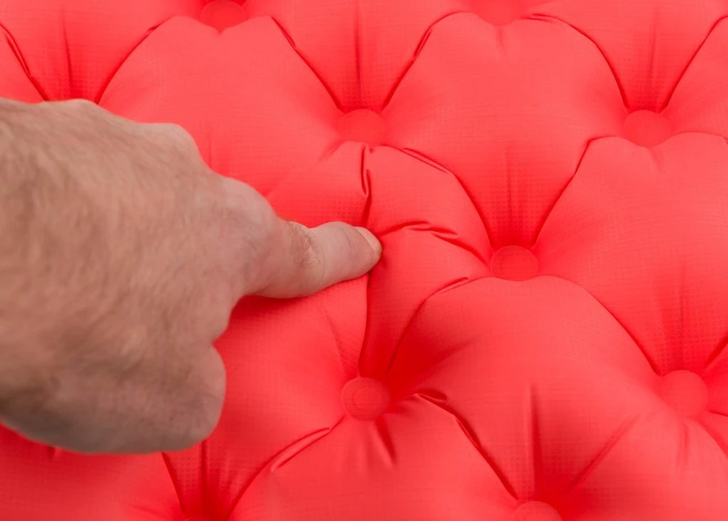 - Sur le dessus, nylon 40 deniers : bon compromis entre poids et durabilité.Revêtement PU pour réduire le glissement et éliminer le bruit de plastique et renforcer le matelas contre les crevaisons. Agréable au touché.