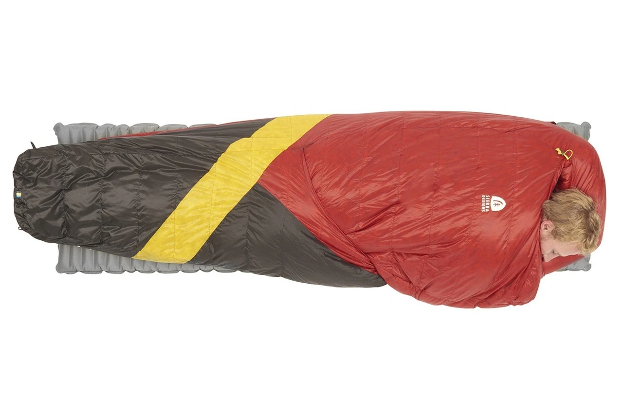 Sac de couchage sans fermeture éclair offrant une grande liberté de mouvements. Température de confort -3°C, modèle homme.