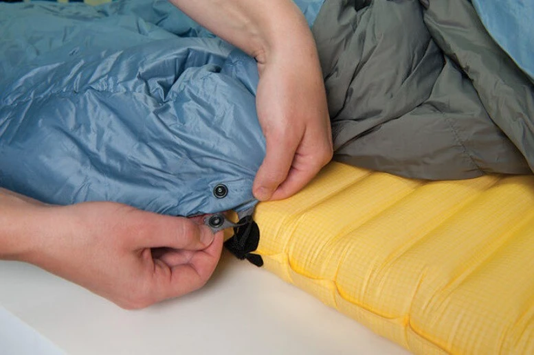 Couette légère en duvet pour deux personnes, à utiliser seule ou en complément d’un sac de couchage.