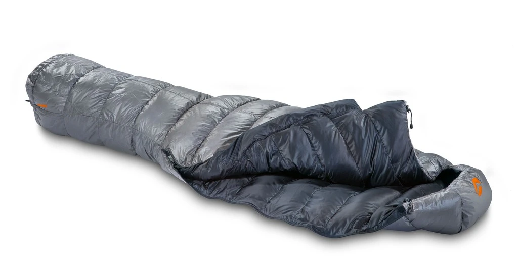 Ce sac de couchage a un garnissage en duvet d’oie grise fermière et française de 800 cuin + avec une répartition de garnissage 95/5, ce qui lui confère une température confort de 0,1°C.