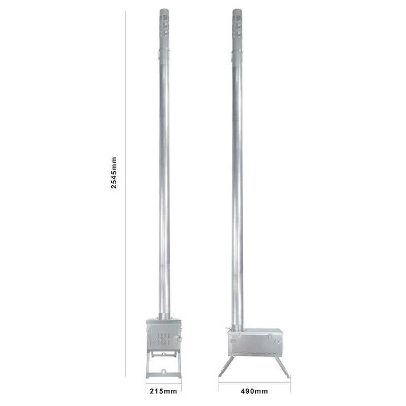 Poêle à bois en titane, léger et compact, facile à installer et stable avec son conduit rigide.